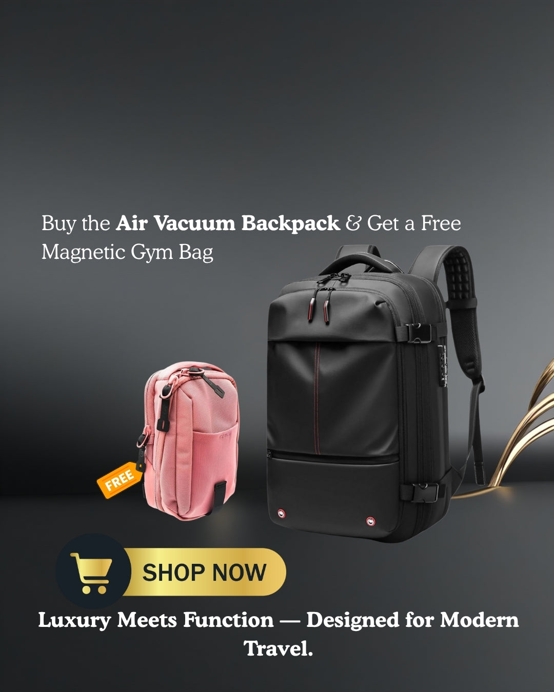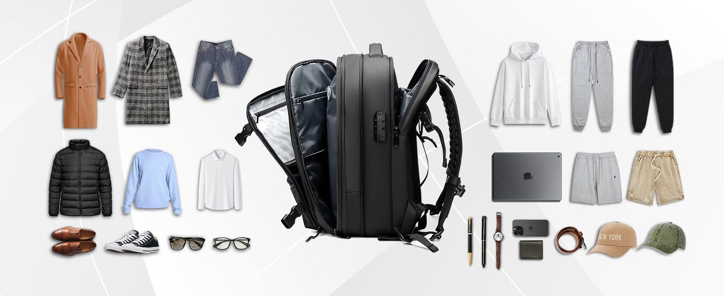 The Vaccum Air Bagpack is fitted with a built-in vacuum system that enables you to maximize your packing space by reducing the volume of your clothes and other packable items. No need to worry about overpacking or squeezing in that extra jacket anymore!